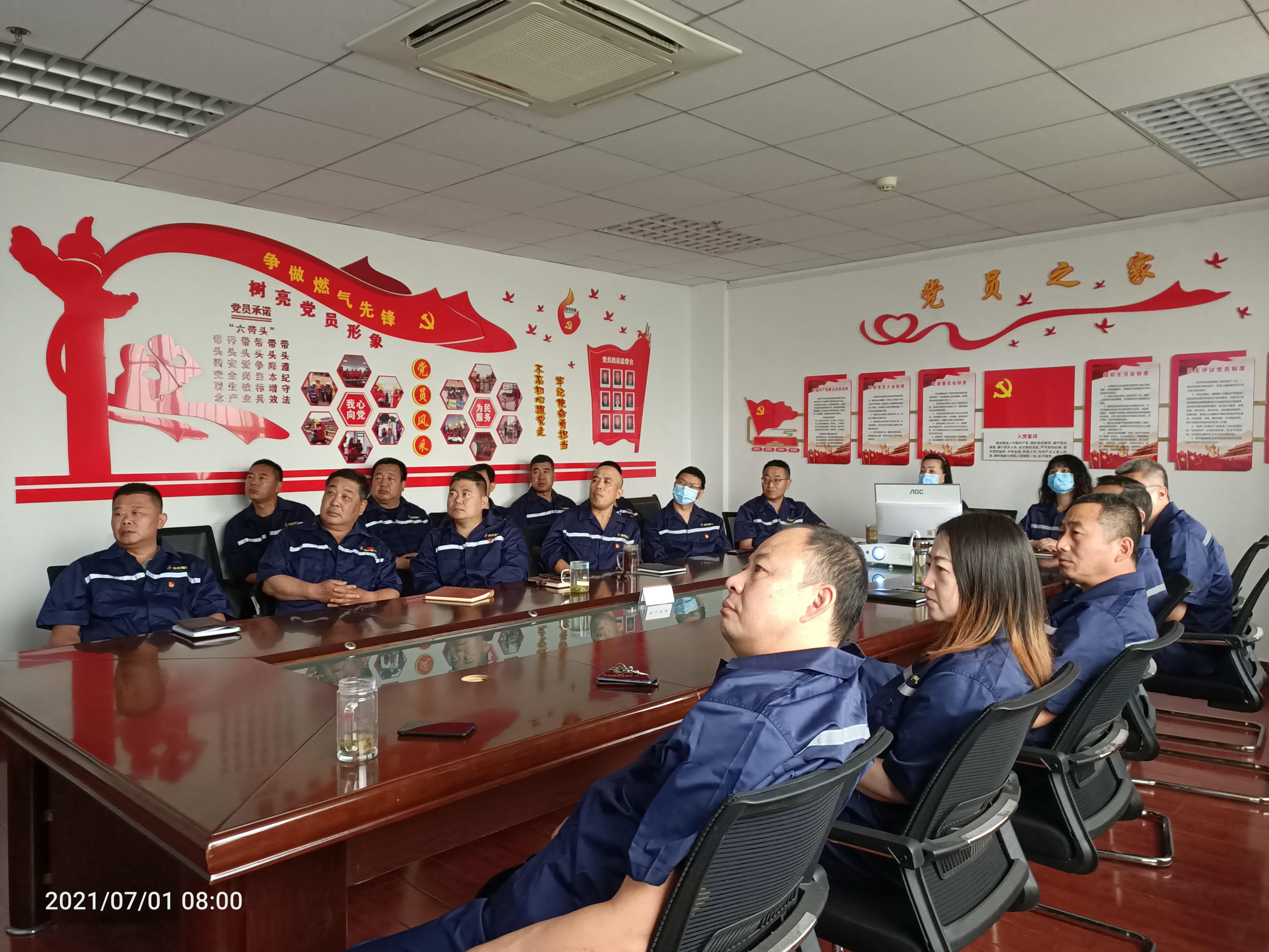 7月1日上午8時(shí), 配氣中心黨支部和管網(wǎng)巡查中心黨支部聯(lián)合組織全體黨員在二樓會(huì)議室通過視頻直播形式,共同收看“慶祝中國(guó)共產(chǎn)黨成立100周年大會(huì)”慶典盛況,共同祝福中國(guó)共產(chǎn)黨百年華誕。