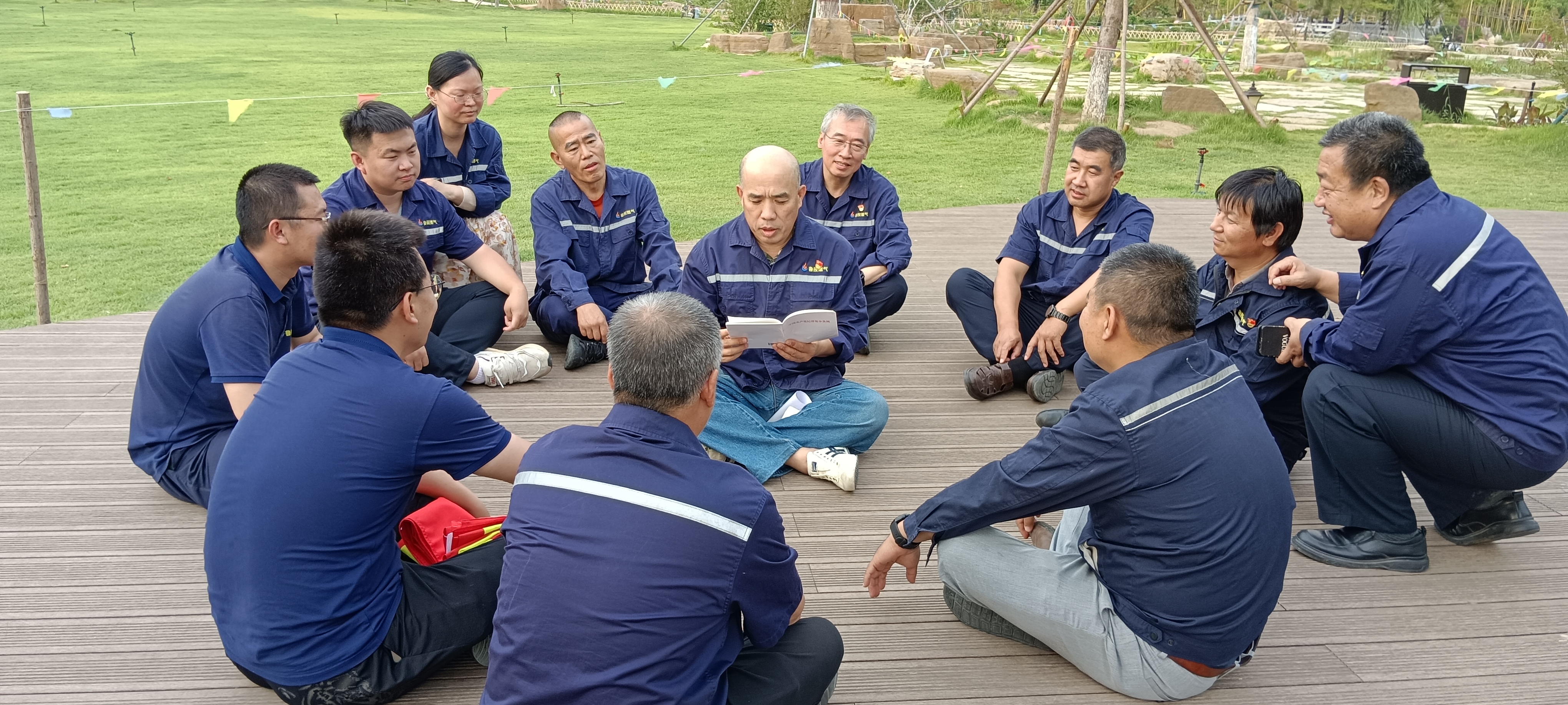 在景色如畫的長廊里,全體黨員重溫了入黨誓詞,鏗鏘有力的誓言提醒著每一位黨員牢記初心使命,以真抓實干踐行對黨的莊嚴(yán)承諾。支部副書記王樹林同志領(lǐng)學(xué)了《中國共產(chǎn)黨紀(jì)律處分條例》、習(xí)近平總書記視察山東時的講話精神以及天然氣燃爆事故案例等內(nèi)容,在綠草茵茵、風(fēng)景秀麗的室外,大家上了一堂別具風(fēng)格的黨課。隨后開展了唱歌、夠級、?;实葓F建活動,大家默契配合、斗智斗勇,不時爆發(fā)出一陣陣笑聲、喝彩聲。在徐徐晚風(fēng)中大家放松心情,圍坐在一起共同品嘗美味的大鍋燉,現(xiàn)場氣氛熱烈,歡聲笑語不斷。
