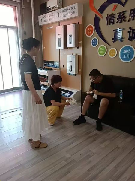 在眾人合力救助下,小伙逐漸恢復(fù)意識。他事后感激表示:“當(dāng)時腦子昏昏沉沉,要不是燃?xì)饪头藛T及時幫忙,真不知道會怎樣,太感謝大家了!” 這份救助,不僅是一次應(yīng)急行動,更是魯辰燃?xì)?“情系用戶、真誠服務(wù)” 理念的生動實踐。從 “服務(wù)從心開始” 的文化墻指引,到 “用心傾聽、熱心接待” 的實際行動,魯辰燃?xì)馊擞秘?zé)任詮釋 “為人民服務(wù)” 宗旨,將暖心互助融入日常,成為高溫下守護(hù)市民的 “藍(lán)色暖流”。