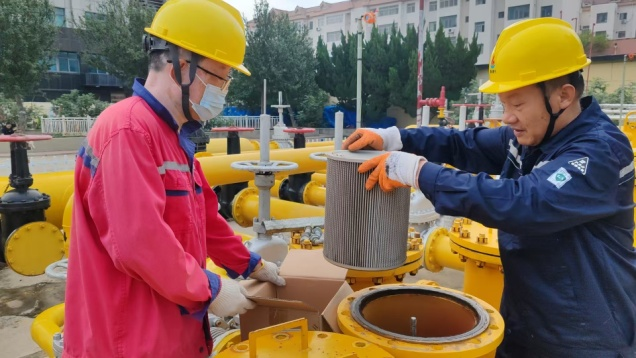 安全,是刻在每位輸氣工骨子里的首要準(zhǔn)則。經(jīng)過(guò)流程切換、放空泄壓等規(guī)范操作后,濾芯更換工作正式啟動(dòng)。過(guò)濾器閥蓋緩緩打開(kāi),原本潔白的濾芯,因數(shù)日運(yùn)行已被粉塵、油污染成深褐色。值班人員默契配合:有人小心取出沉重的舊濾芯,有人同步清理過(guò)濾器內(nèi)壁以防雜質(zhì)滲入下游管道,隨后精準(zhǔn)裝入新濾芯,細(xì)致緊固螺絲、檢查密封、完成測(cè)漏。這看似簡(jiǎn)單的“換芯”,實(shí)則是為管網(wǎng)“清肺排毒”,直接牽動(dòng)著千家萬(wàn)戶灶火的安全與穩(wěn)定。
